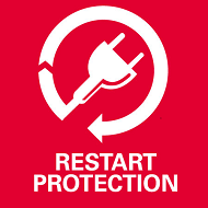 - Защита от повторного пуска: предотвращает непреднамеренный запуск после прерывания электропитания